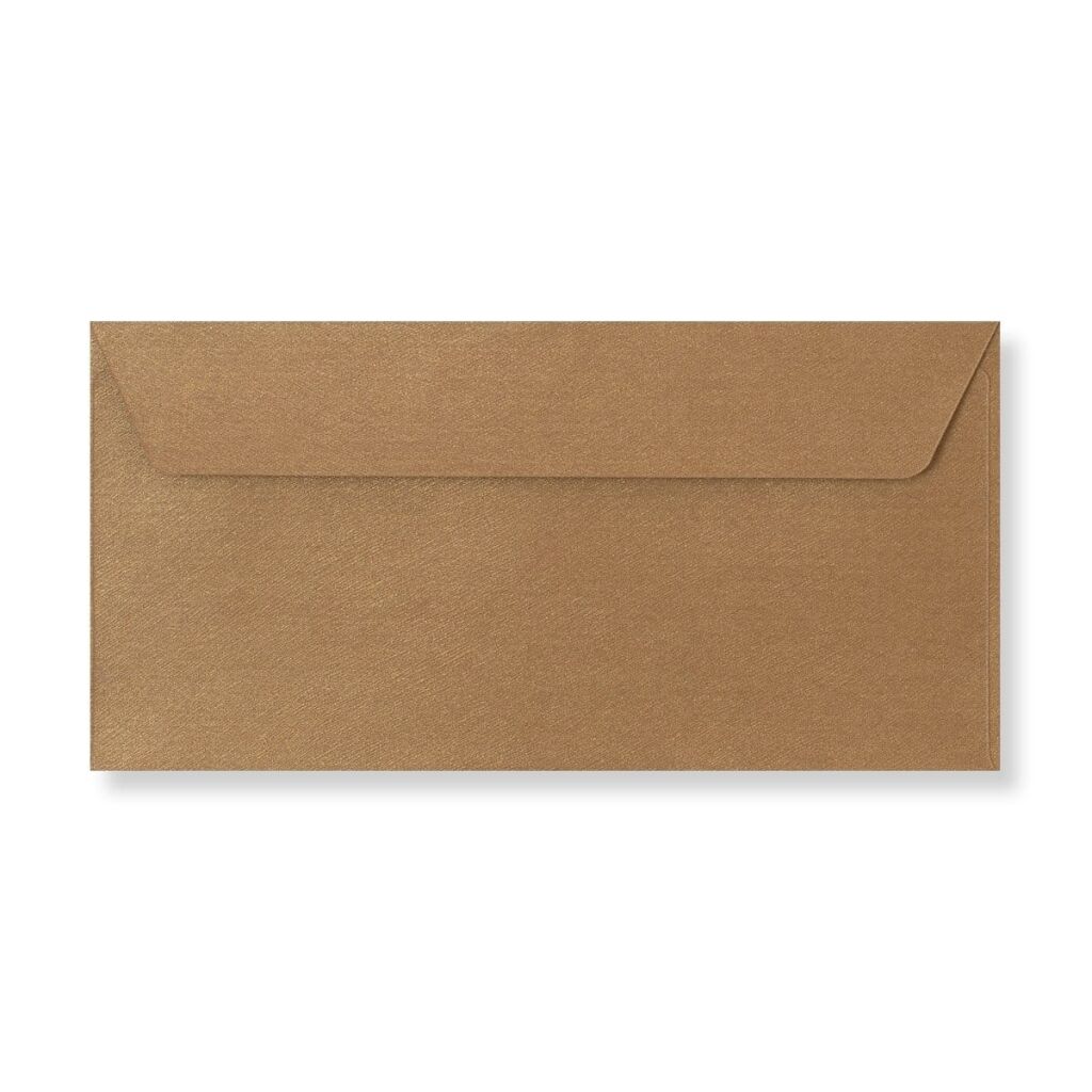 Obálka DL 110 x 220 mm 120 gr zlatá bronzová s texturou. Balení 50 ks. Samolepicí s krycí páskou, rovná klopa.