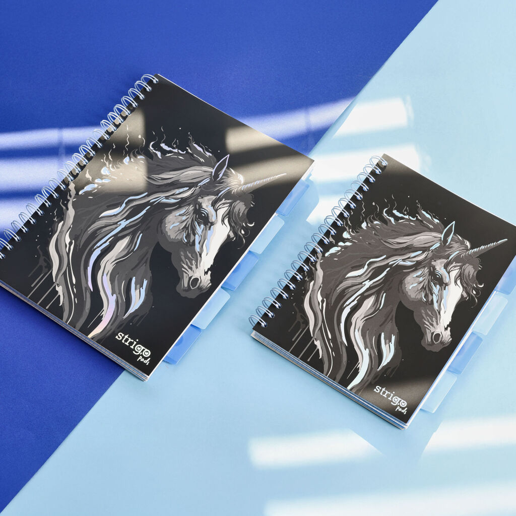 Poznámkový blok s boční spirálou, A4 100 listů, linkovaný. Barevné rozlišovače pro lepší orientaci. Perforované stránky.