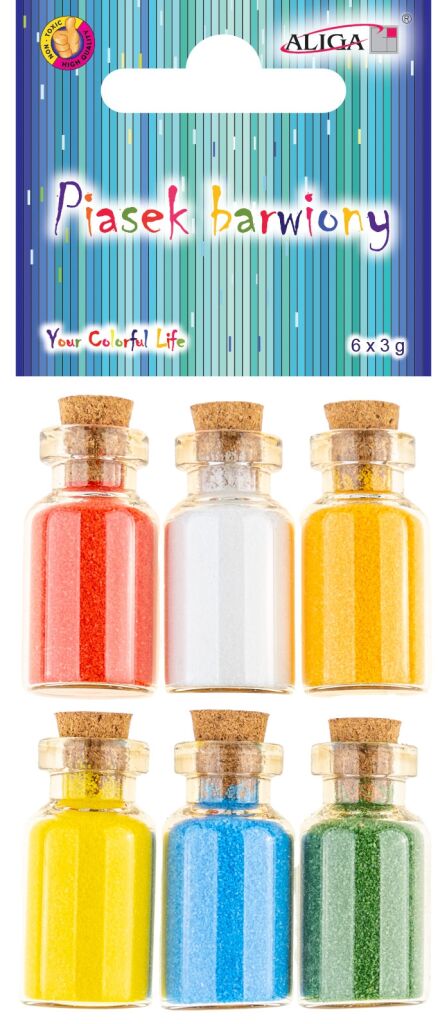 Dekorační písek v lahvičce, 6 barev po 4g.