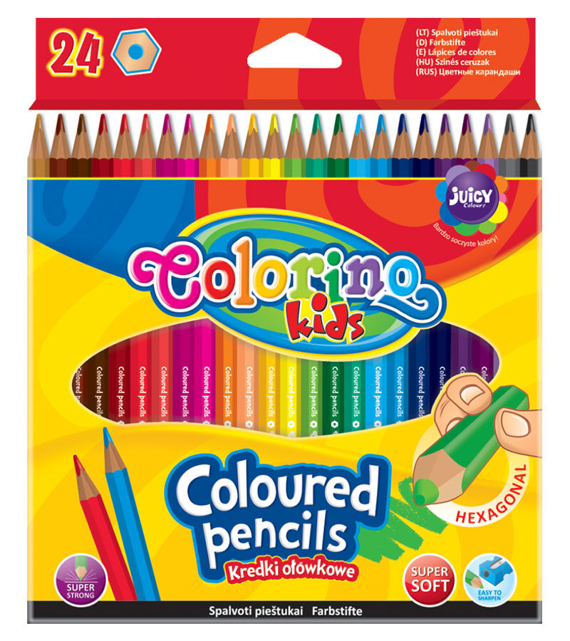 Pastelky Colorino, hexagonální. Provedení: 24 barev
