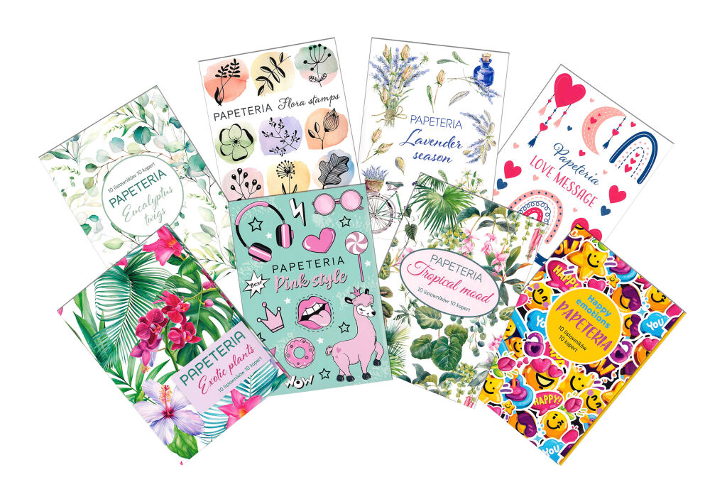 Dopisní souprava s potiskem. Mix motivů. Potisk na obálce a na dopisních papírech.