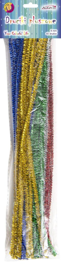 Drátky plyšové 6 mm x 30 cm metalický mix 40 ks
