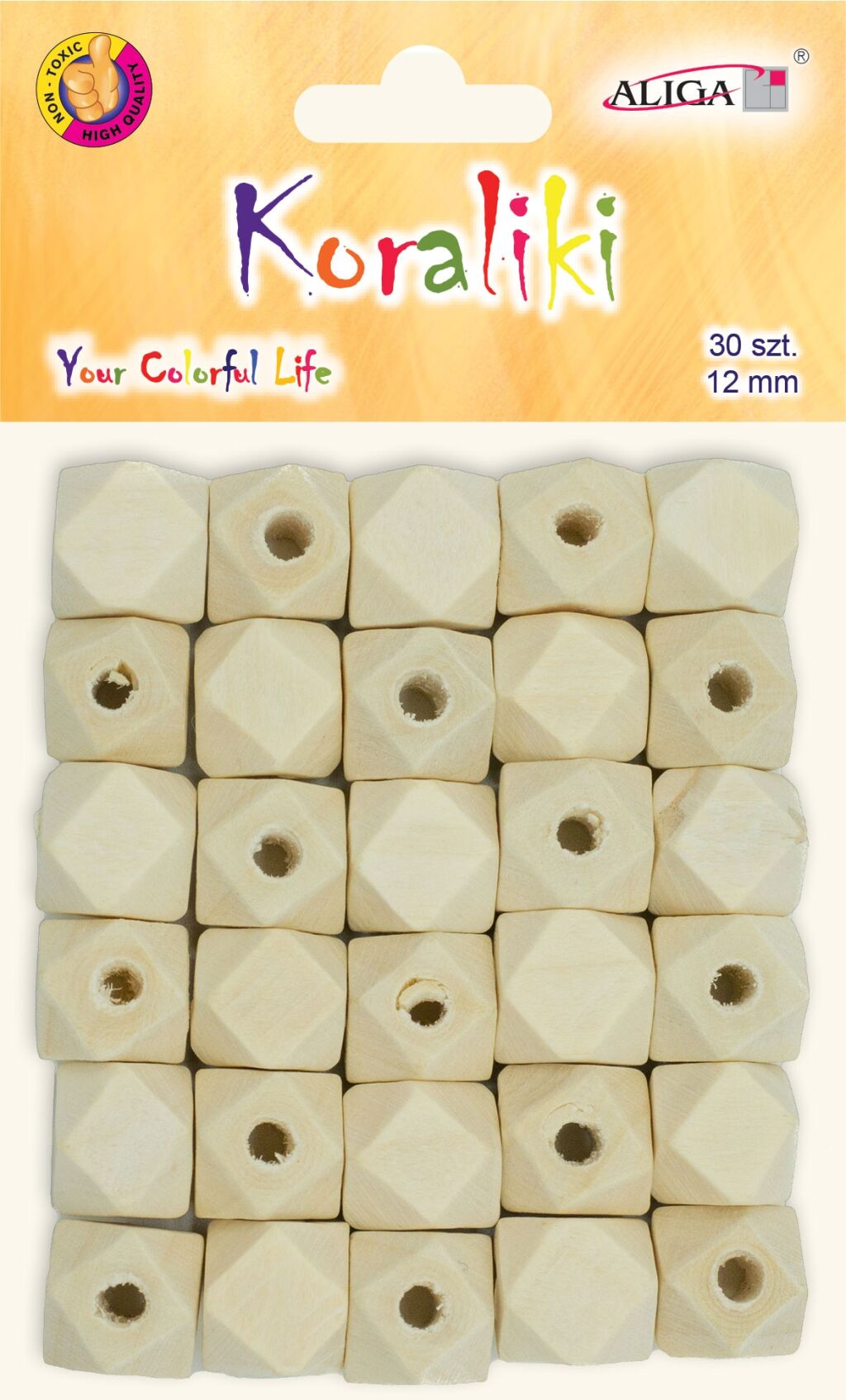 Dřevěné korálky natur 12 mm 30 ks geometrické