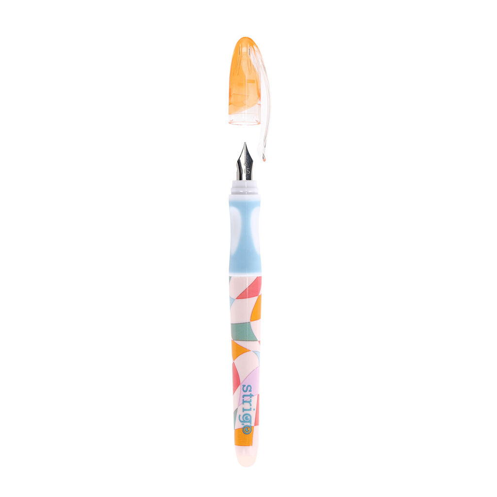 Plnící pero na bombičky, které lze gumovat. Pero má ergonomický úchop. Zabalené na blistru včetně 2 ks bombiček a čistítka hrotu. Vhodné pro praváky i leváky.