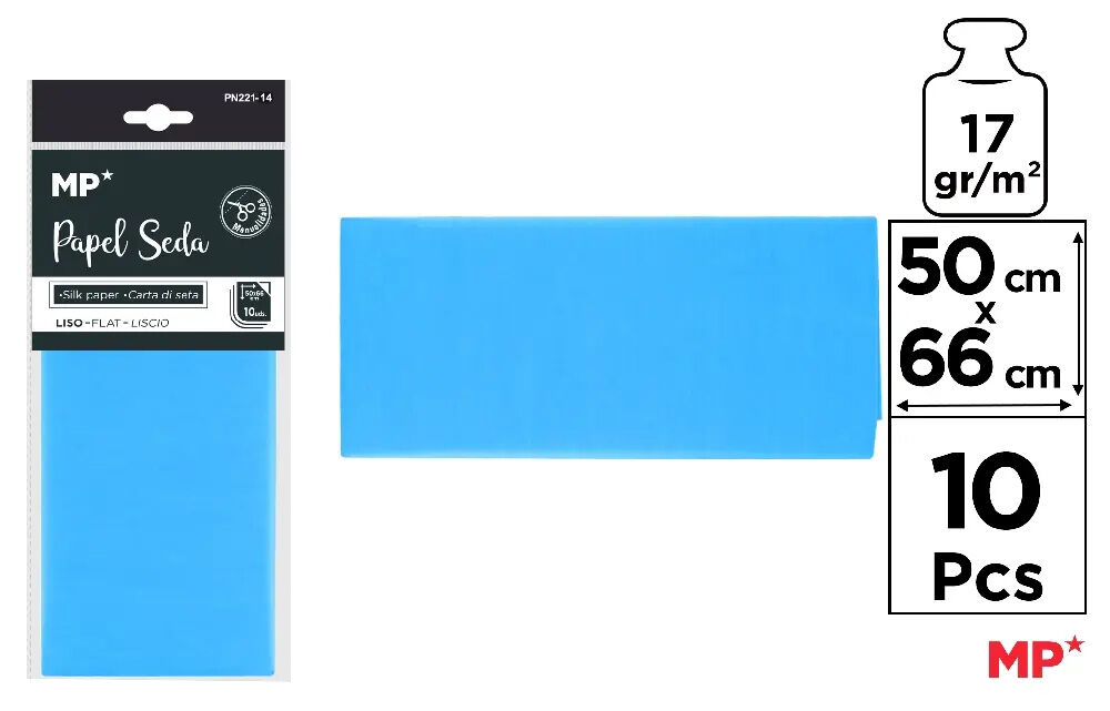 Hedvábný papír 17 g / m2. Velikost 50 x 66 cm, v balení 10 archů stejné barvy.