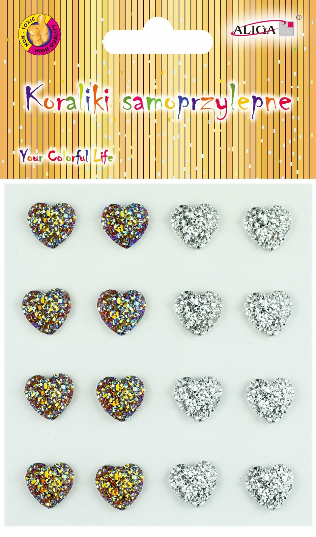 Nalepovací plastové kamínky ve tvaru srdce na blistru 8,5 x 9,5 cm.