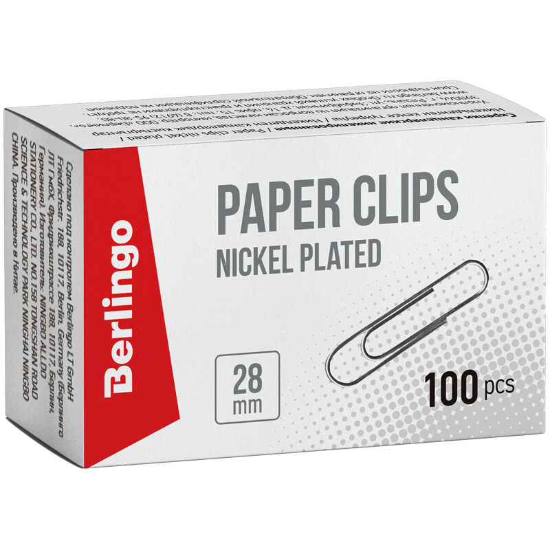 Kancelářské sponky 28 mm Berlingo - poniklované