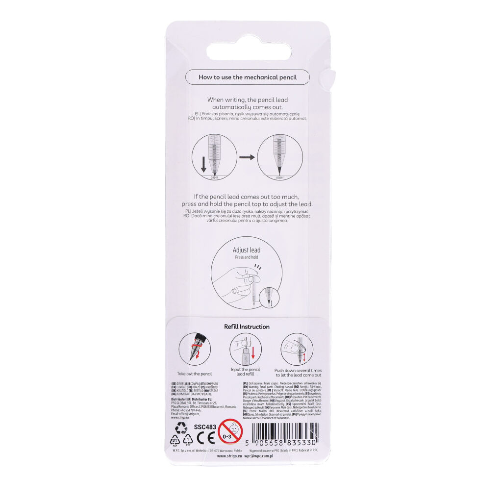 Automatické vysouvání tuhy: Při psaní se tuha s tloušťkou 0,5 mm automaticky posouvá ven, takže se můžete plně soustředit na práci.