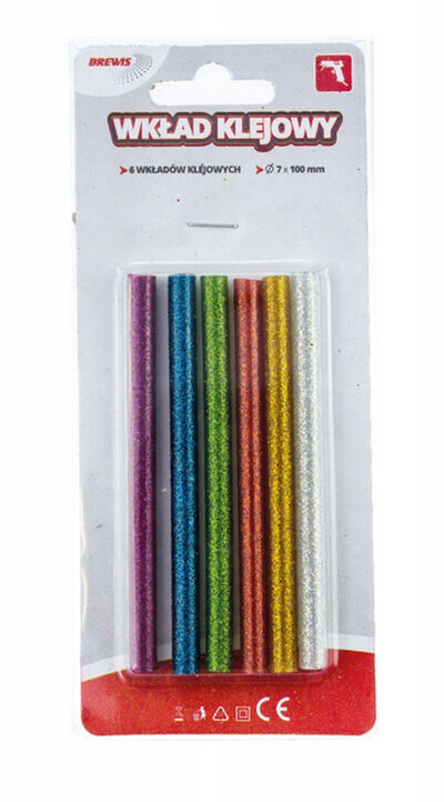 Lepící tyčinka do tavné pistole, s brokátem, mix barev 7 mm. Balení obsahuje 6ks.
