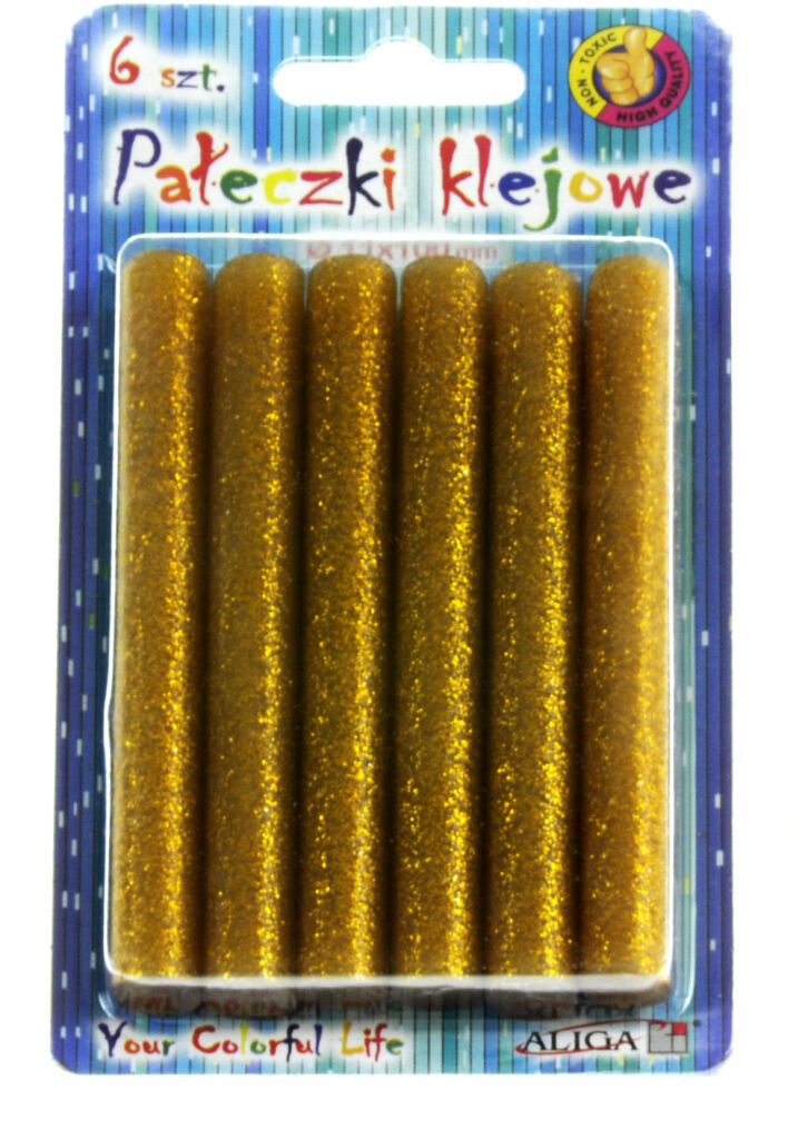 Lepící tyčinka do tavné pistole, s brokátem, zlatá 11 mm. Balení obsahuje 6ks.