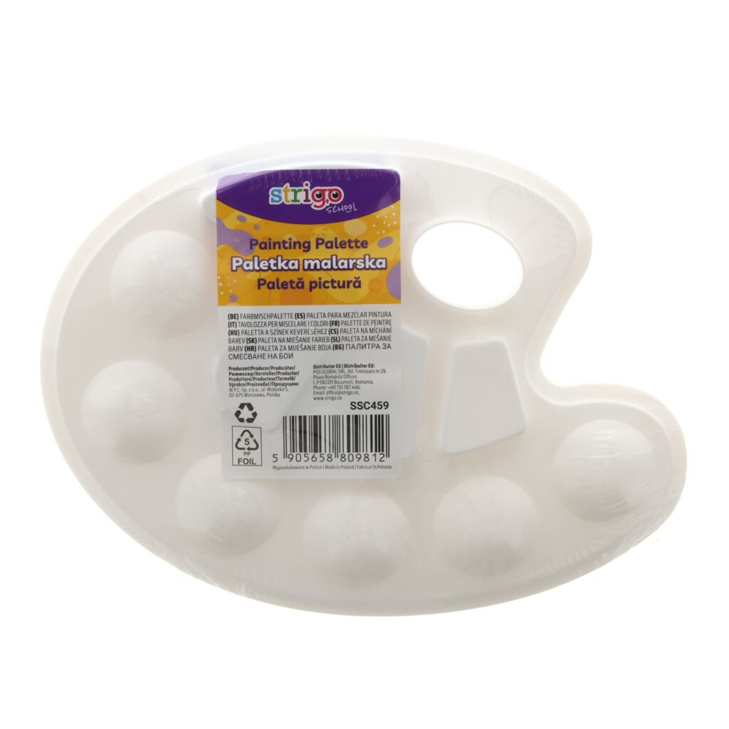 Paleta má 6 misek pro barvy a 4 misky pro míchání barev. Vyrobená z odolného nepraskavého plastu.