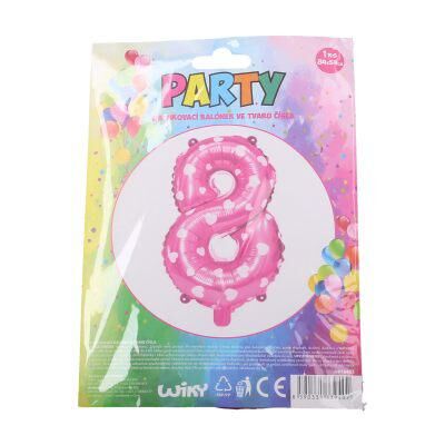 Nafukovací balónek ve tvaru čísla 8, balení obsahuje 1 ks, barva: růžová. Provedení: 75 x 54 cm