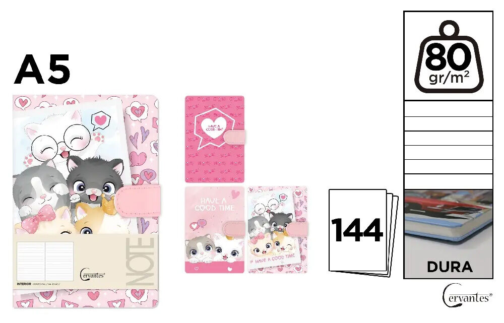 Notes A5 s magnetickým zavíráním 80g / m2 Kočky