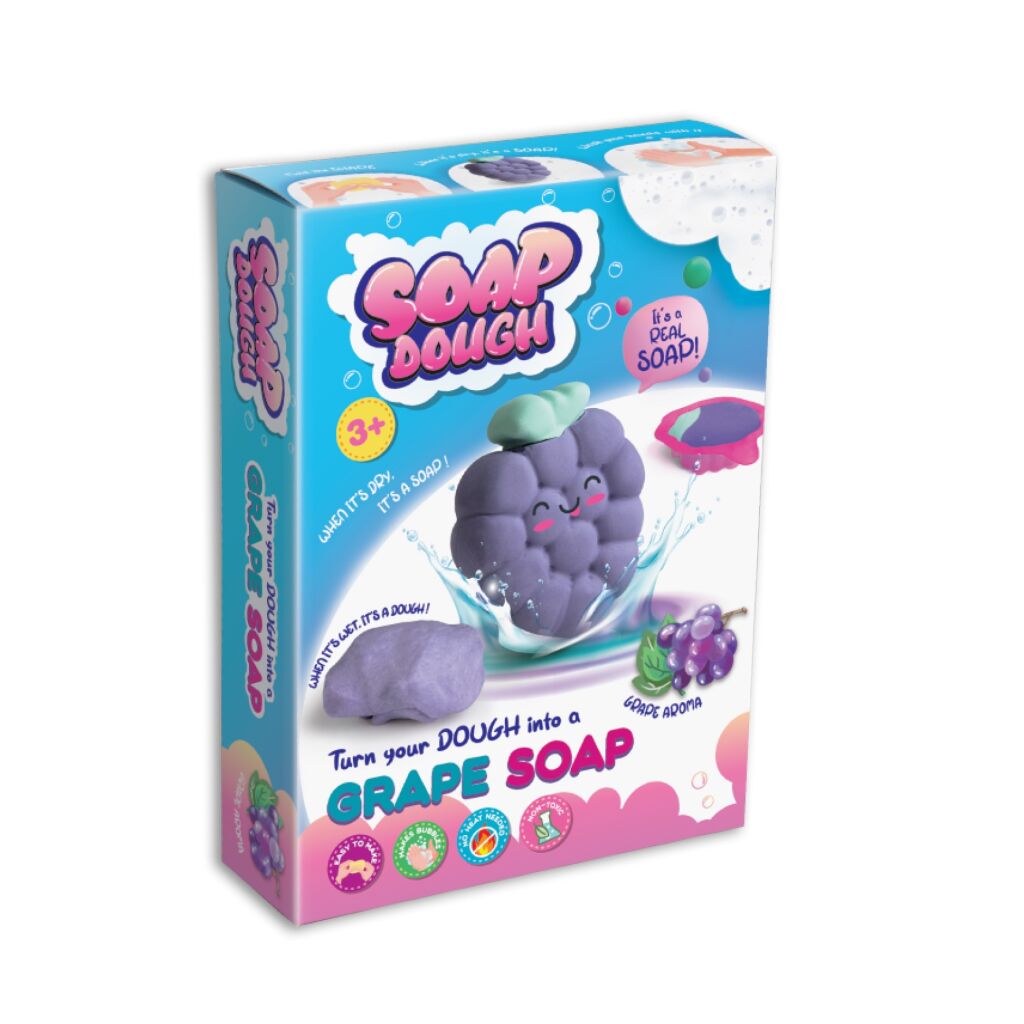 Netoxická sada pro výrobu vlastního mýdla. Obrázkový návod součástí balení. Sada obsahuje: mýdlovou hmotu s ovocnou vůní formičku síťovaný pytlík návod