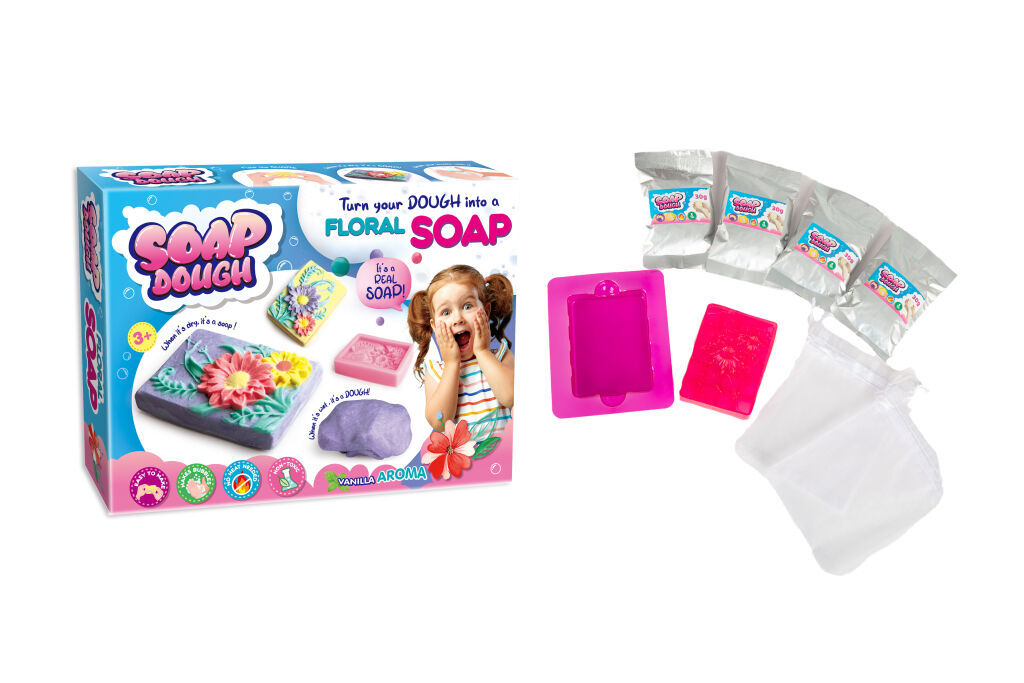 Sada pro výrobu mýdla s motivem květin. Obsah balení - 4x30g mýdlové hmoty, síťové pytlíčky, formičky, návod. Hotové mýdlo můžete vložit do ...