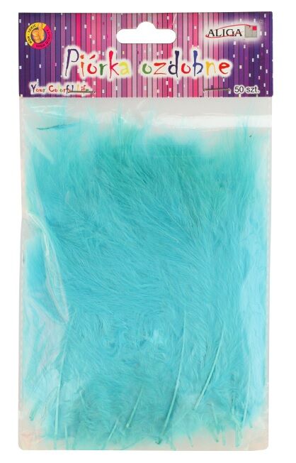 Dekorační peříčka, 10-12 cm, balení obsahuje 50 ks. Barva: světle modrá