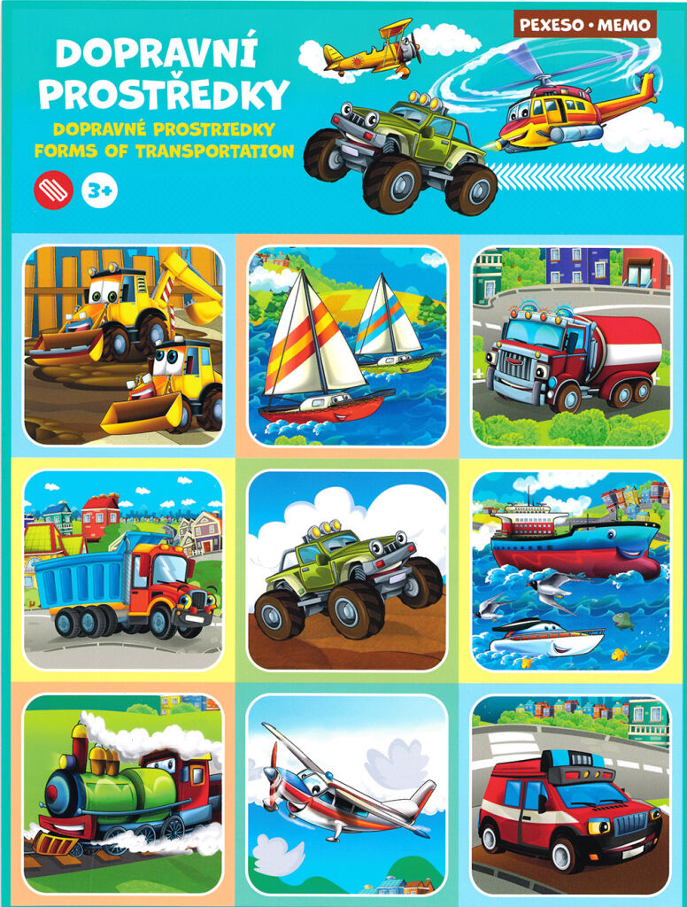 Pexeso s motivem dopravní prostředky k vystřižení.