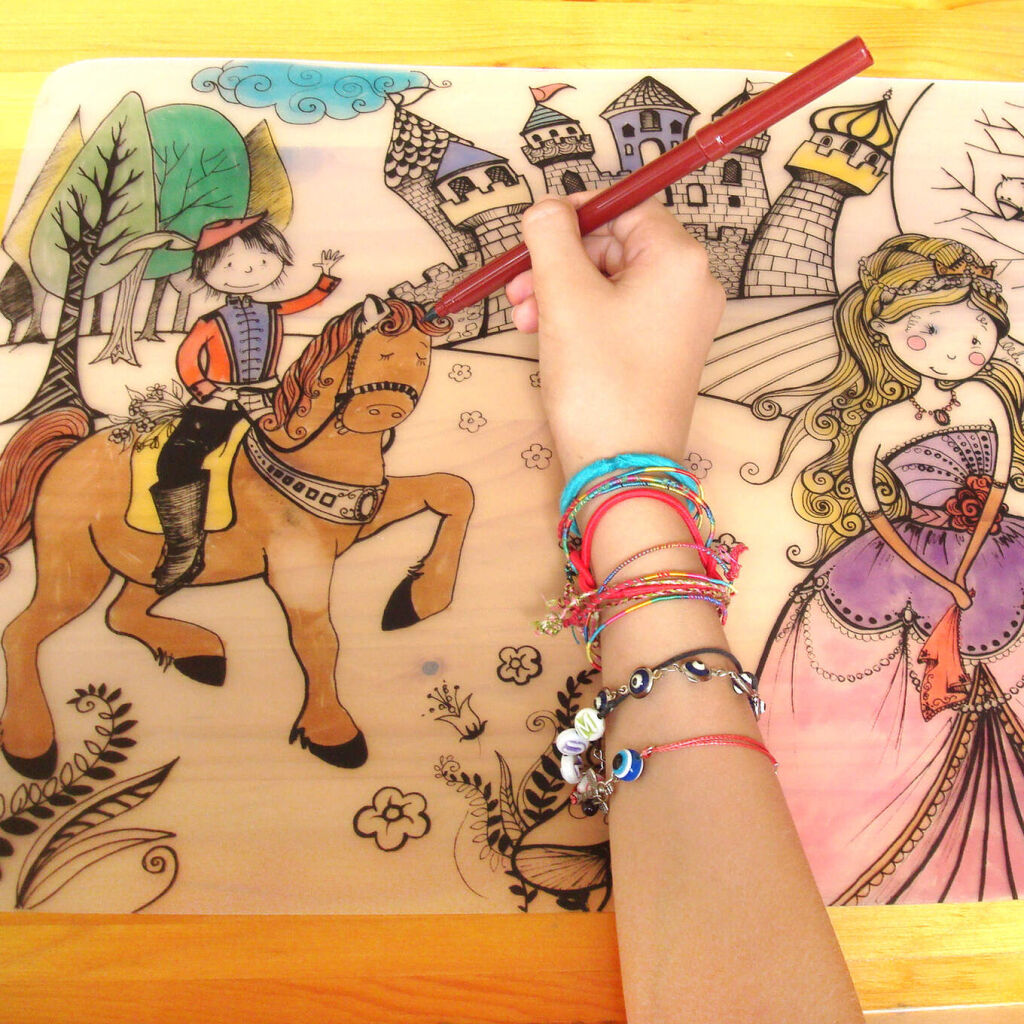 Podložka na kreslení FUNNY MAT - Princ a Princezna + pastelky zdarma