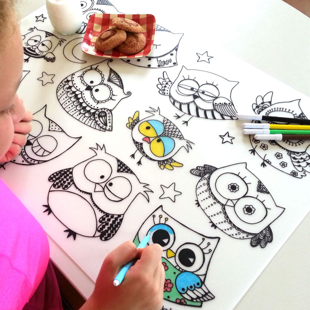 Podložka na kreslení FUNNY MAT - Sovičky + pastelky zdarma