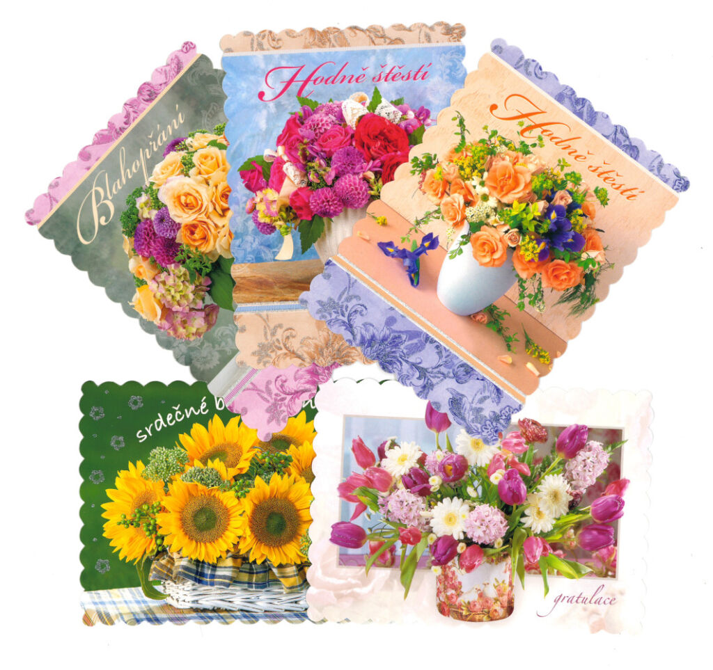Pohlednice S-367 Kytky glitr