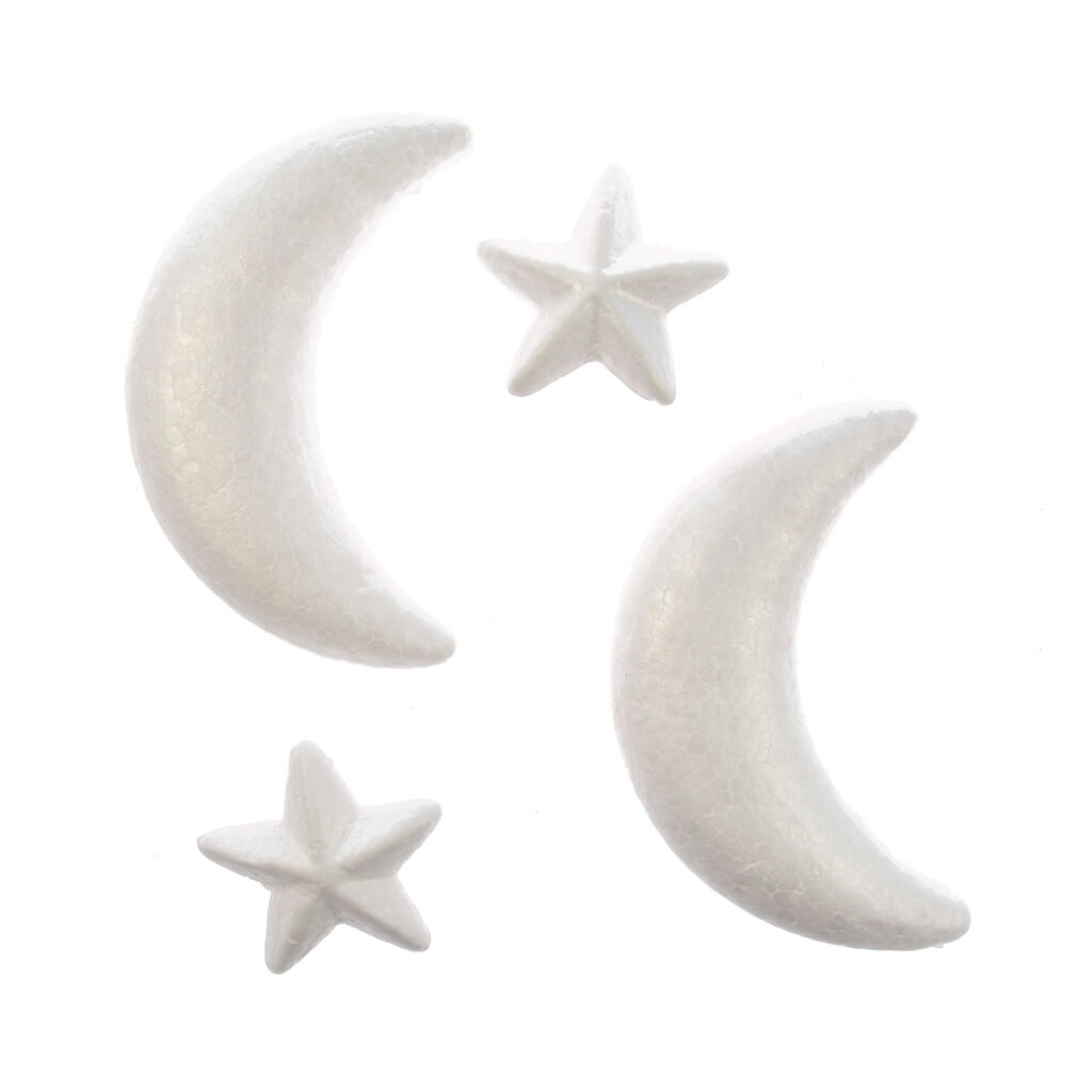 Polystyrenová dekorace - hvězdičky a měsíc 4 ks