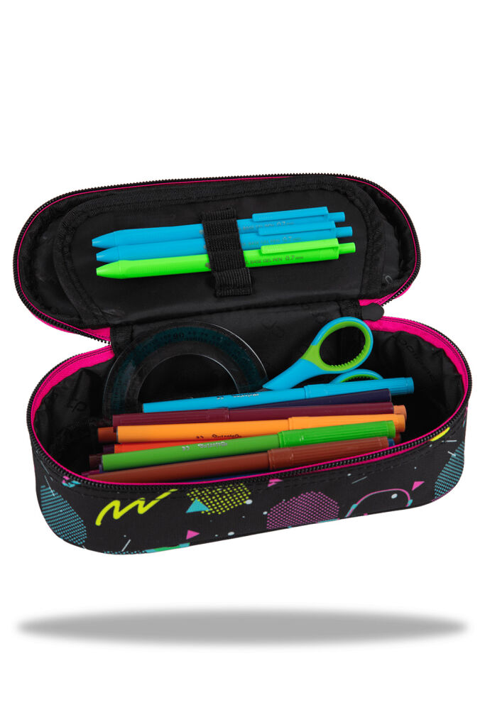 Školní pouzdro CoolPack Campus s jednou prostornou komorou. Jedna klopa s organizérem na psací potřeby a síťovaná kapsa na zip.
