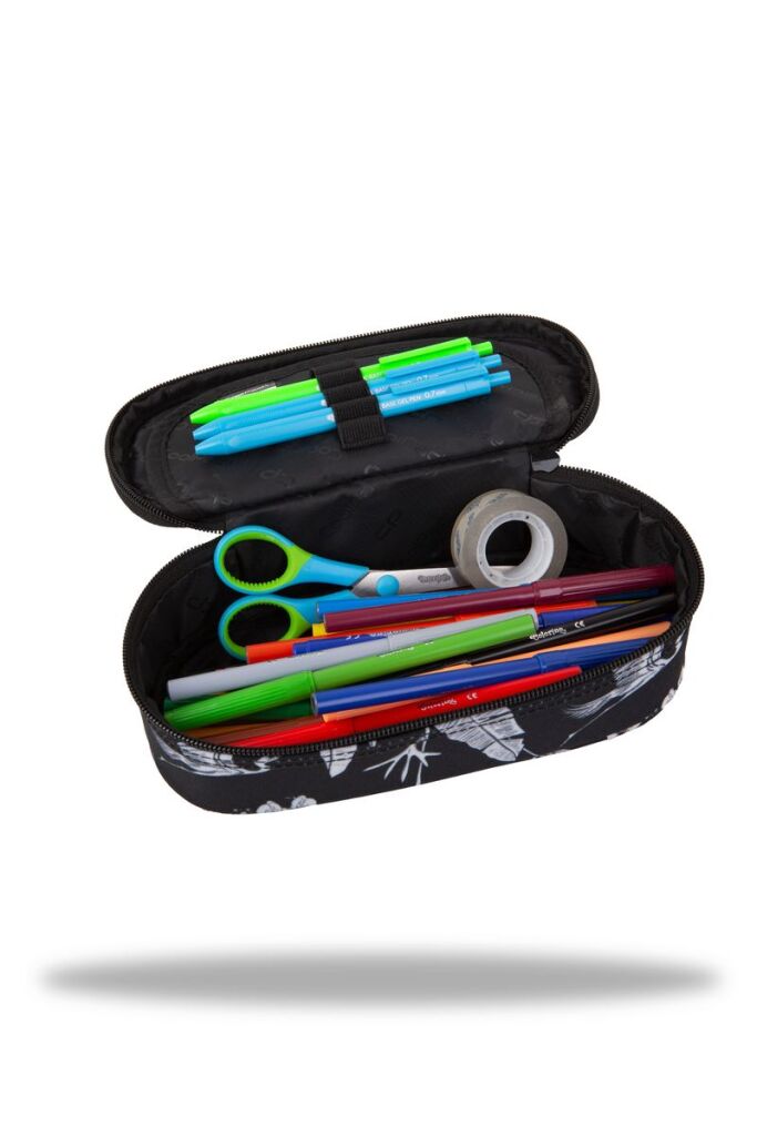 Školní pouzdro CoolPack Campus s jednou prostornou komorou. Jedna klopa s organizérem na psací potřeby a síťovaná kapsa na zip.