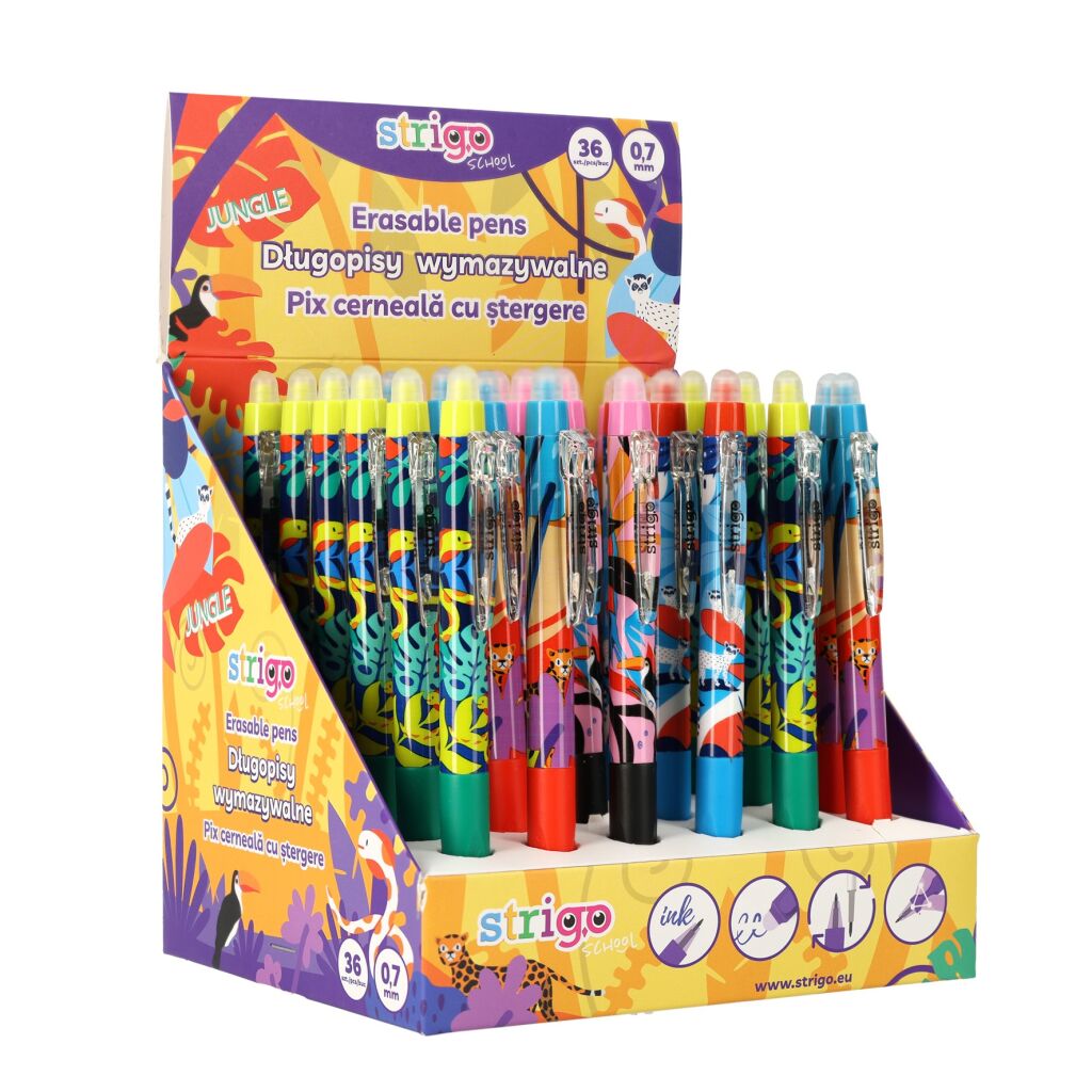 Gumovací propiska STARS vyměnitelnou náplni, klikací. V balení 36 ks. Šířka hrotu 0,5 mm. Trojboke.