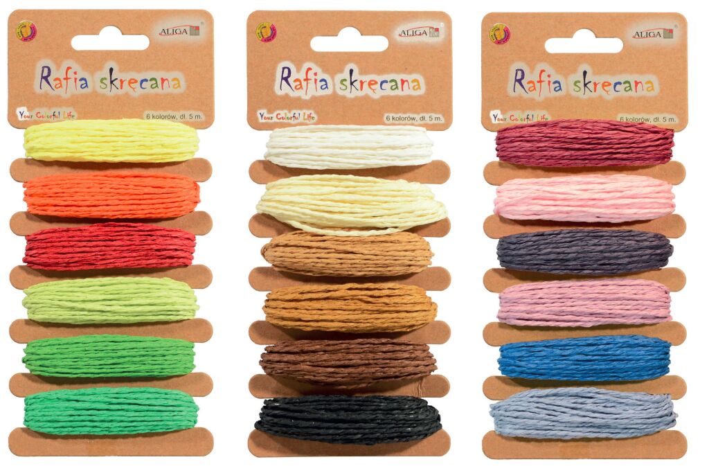 Raffia provázek, 5m, 6 barev, 3 sestavy. Provedení: 5m