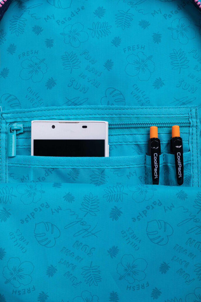 Velký studentský batoh CoolPack Prime 2 komory Pohodlná tvarovaná záda EVA Polstrované ramenní popruhy Polstrovaná rukojeť Vnitřní kapsa na organizér Kroužek na klíče Otvor pro sluchátka Vyztužené polstrované dno Boční kapsy na láhev Objem 21L