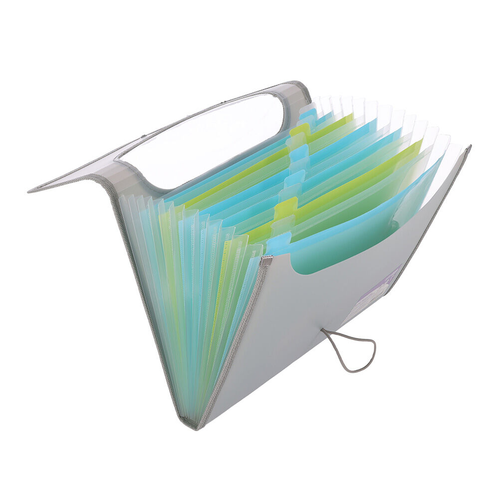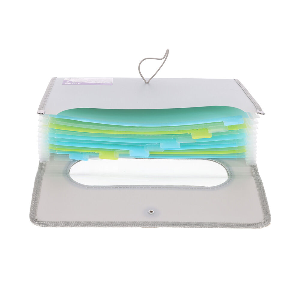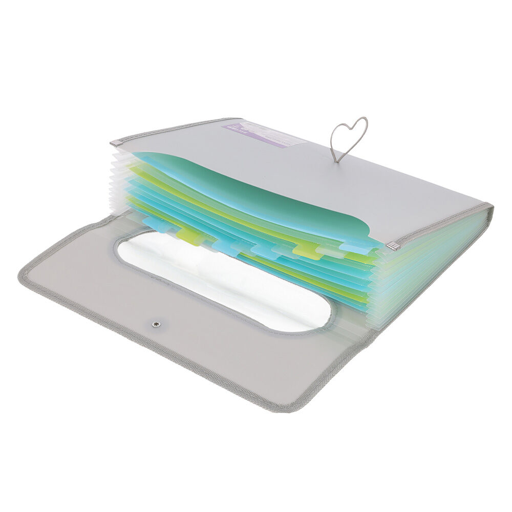 Fialová složka A4 s 6 kapsami / přehrádkami se zapínáním na gumu a knoflík.