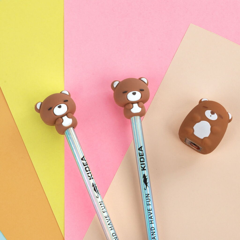 3 ks tužek na blistru s postavičkou a ořezávátkem ve tvaru Medvídka.