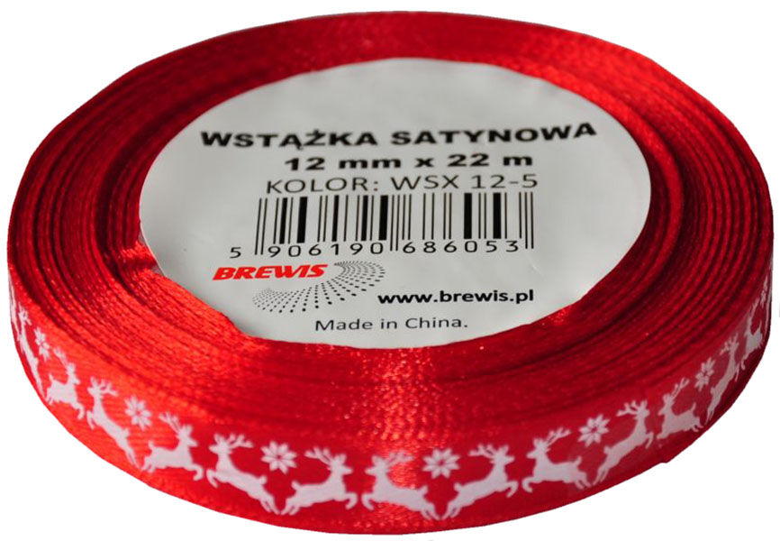Vánoční atlasová stuha 12 mm červená - 05