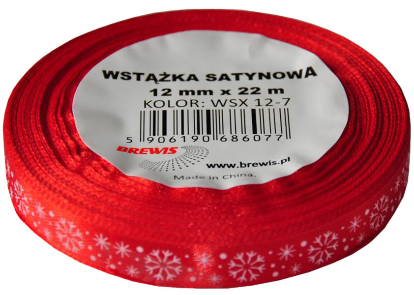 Vánoční atlasová stuha 12 mm červená - 07