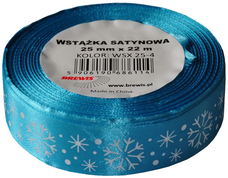 Vánoční atlasová stuha 25 mm tyrkysová - 04