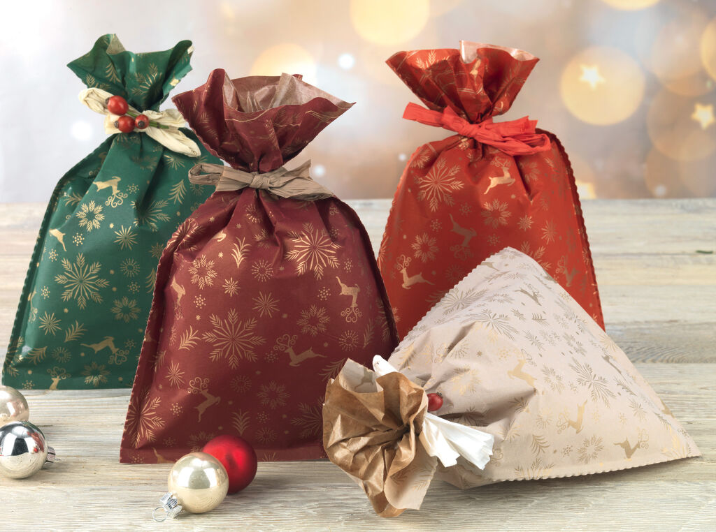 Dárkové sáčky Vánoční sáček Vixen PE Paper 100% voděodolné, kompostovatelné, extrémně odolné.