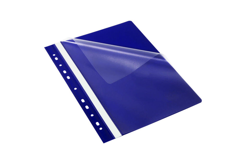 Rychlovazač A4 s euroděrováním, průhlednou přední stranou, v tmavě modrém provedení. Provedení: A4
