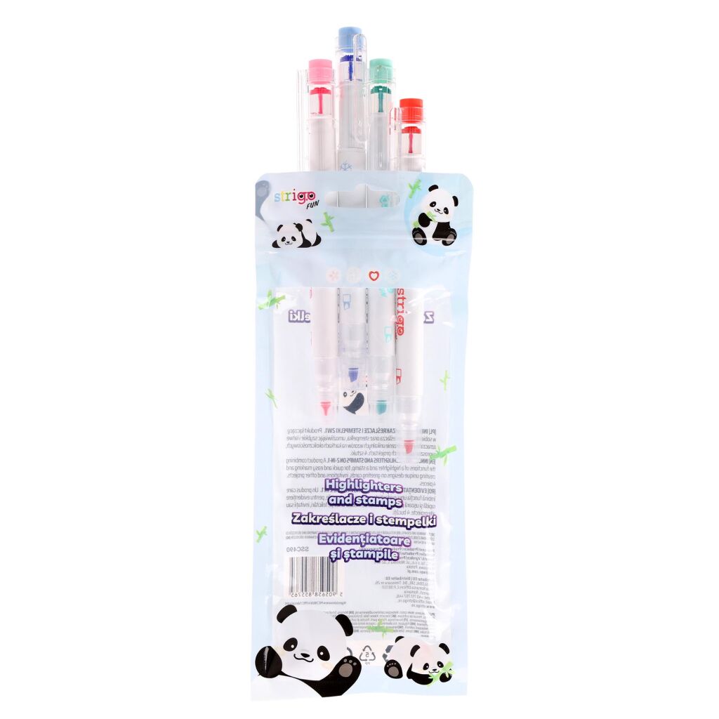 Zvýrazňovače 2 v 1 s razítkem - Panda 4 barvy