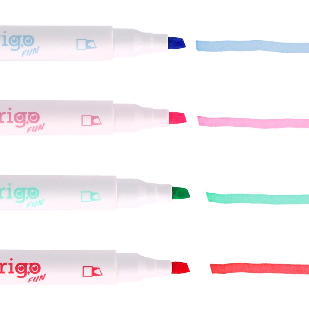 Zvýrazňovače s razítkem 2 v 1. V balení 4 barvy: červená, zelená, modrá, růžová. Na obalu motiv Pandy.